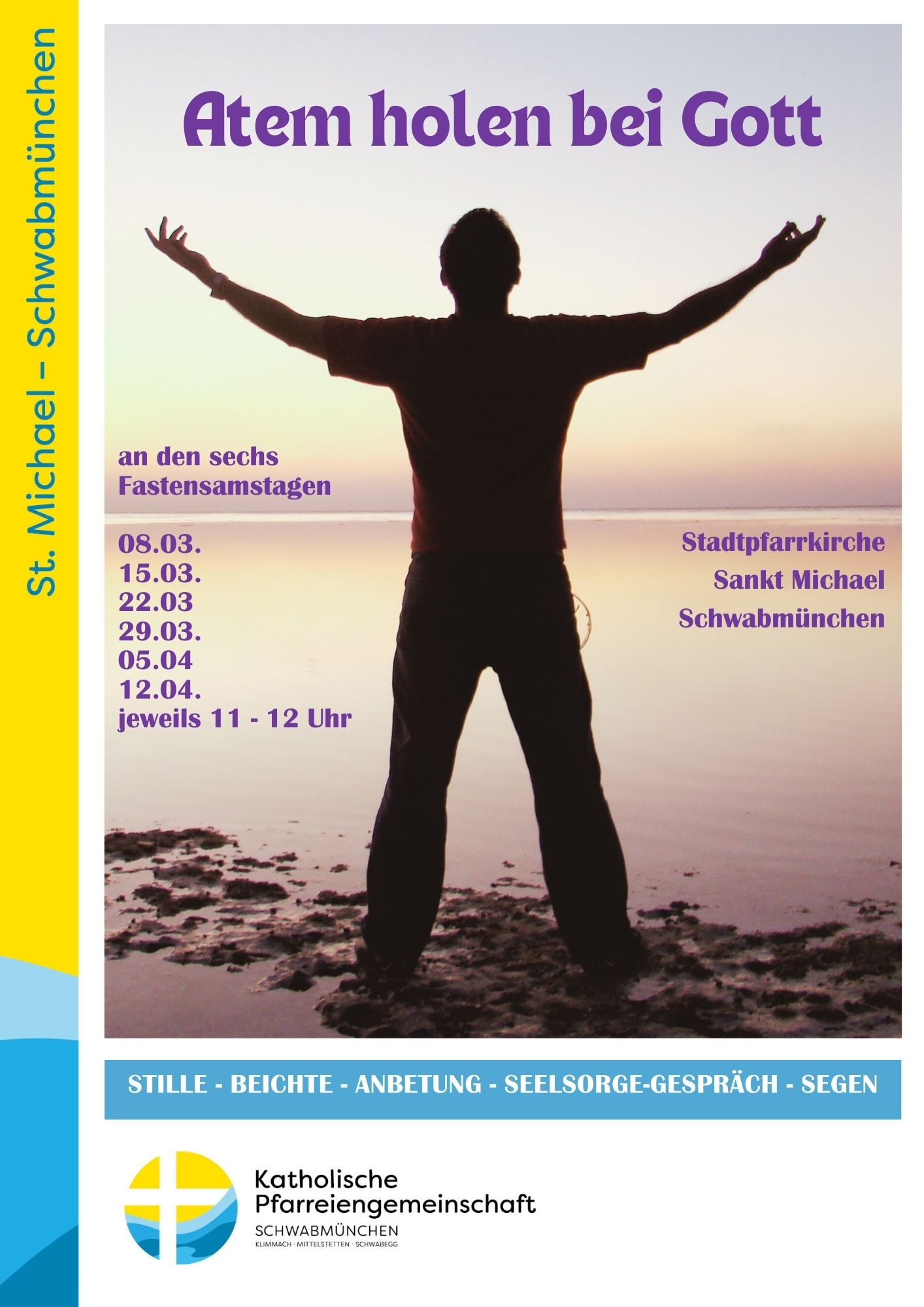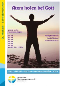 ATEM HOLEN BEI GOTT – an den sechs Fastensamstagen ab dem 08. März Posted on März 8, 2025 by Karola Nothofer No comments Categories: Aktuelles, PGTags: Atem holen, Beichte, Fastenzeit, Gespräch, Gott, Seelsorge, Segen, stille anbetung Bibel-Laufen an den Fasten-Freitagen, ab dem 07. März„Sunday Stories“ Folge 15: Jesus wird vom Teufel versucht – Lukasevangelium
