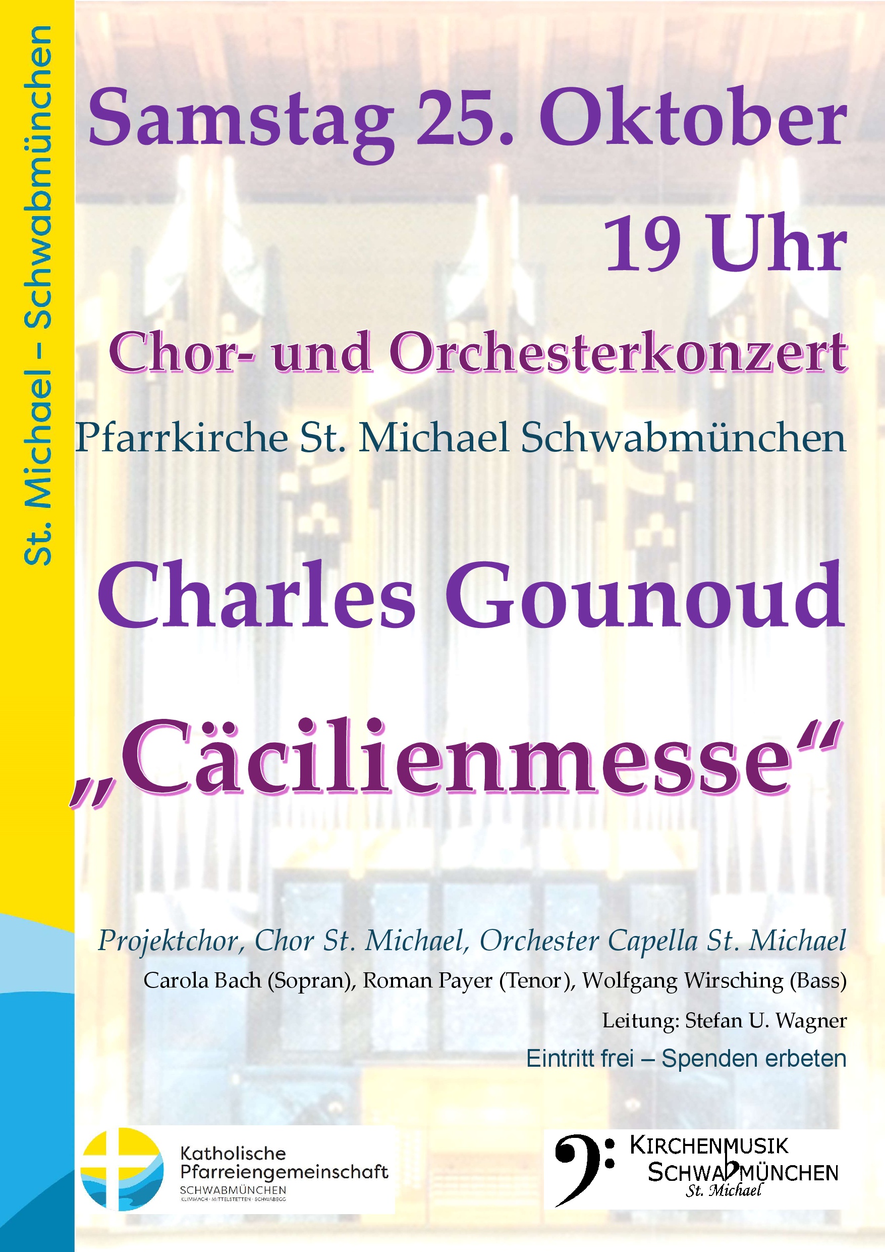 Aufführungen der Cäcilienmesse in Schwabmünchen bei Augsburg sind immer wieder ein Publikumsmagnet. Nach einer mehrjährigen Pause wird in Schwabmünchen die Cäcilienmesse von Gounod wieder in einem Konzert zu hören sein. Dieses herausragende Werk für Chor und großes Orchester wird komplett (mit den selten gespielten Orchesterstück zum Offertorium und dem „Domine salvum“) aufgeführt. Das Orchester spielt zudem das Adagio von Gounod. Auch eine Komposition des englischen Komponisten Edward Elgar wird interpretiert. Dessen Werk „Ecce sacerdos“ gehört in der Fassung für Chor- und Orgel zum Standardrepertoire englischer Chöre. Dem Schwabmünchner Kirchenmusiker Stefan Wagner gelang es mit Hilfe der „Edward Elgar Gesellschaft“ die Orchesterfassung in der englischen Nationalbibliothek aufzuspüren. Von dieser Orchesterfassung existiert nur ein Satz Noten, und dieser berichtet von einer einzigen Aufführung im Jahr 1894. Mitwirkende bei dem Konzert sind der Chor St. Michael und ein Projektchor, begleitet vom Orchester „Capella St. Michael“. Die Gesangssolisten sind Carola Bach (Sopran), Roman Payer (Tenor) und Wolfgang Wirsching (Bass). Das Konzert am Samstag 25. Oktober in der Michaelskirche in Schwabmünchen beginnt um 19 Uhr. Die Cäcilienmesse ist wohl das bekannteste kirchenmusikalische Werk von Charles Gounod. Er komponierte sie im Alter von 37 Jahren. Sie ragt aus seinen übrigen Messen durch ihre ausgesprochen üppige Orchesterbegleitung hervor, während die meisten anderen Messen Gounods neben den Sängern höchstens eine Orgel benötigen.