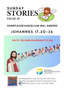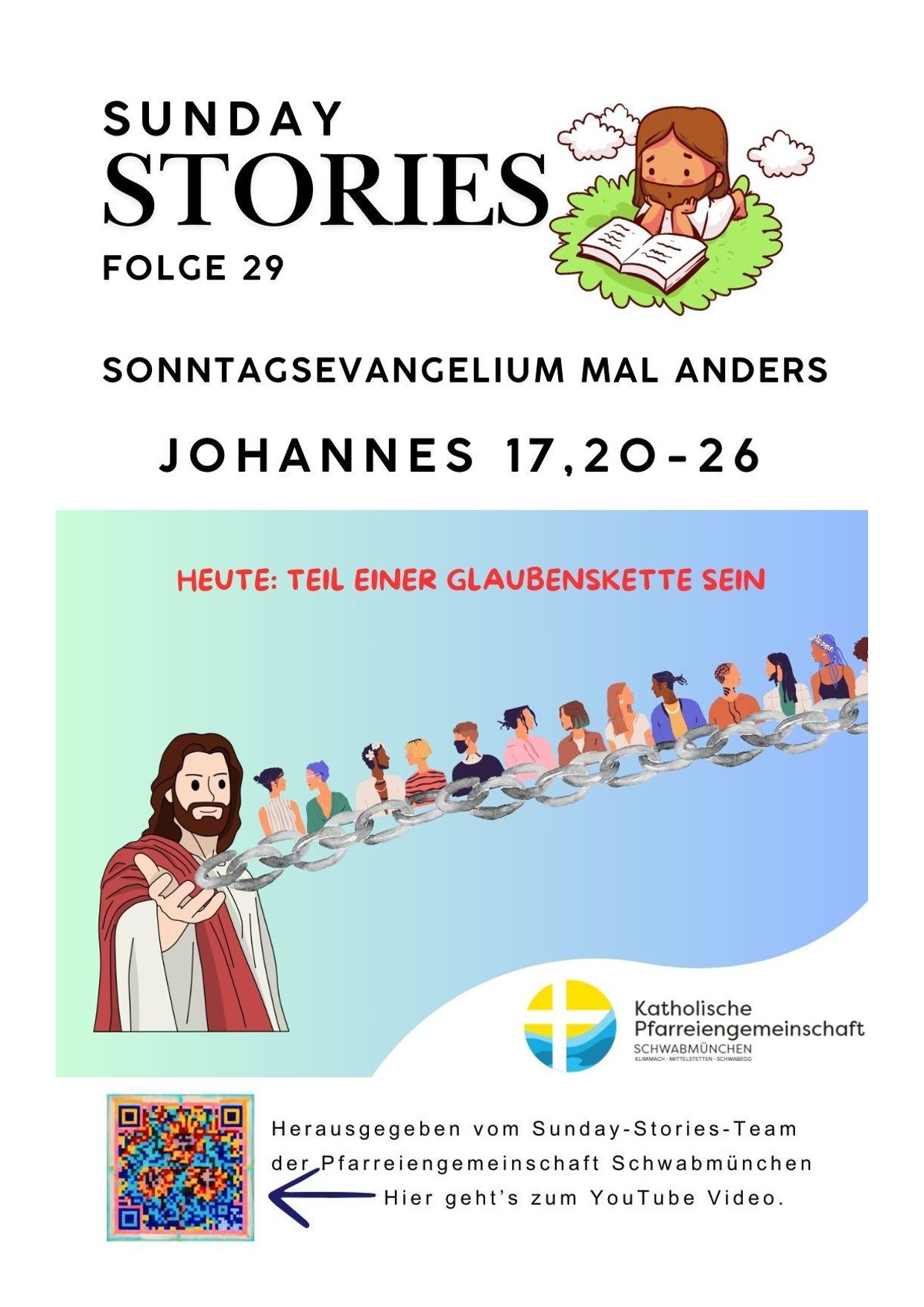 Sunday Stories – Folge 29 – „Teil einer Glaubenskette sein! Posted on Mai 31, 2025 by Karola Nothofer No comments Categories: Aktuelles, PGTags: Evangelium, geschichte, glaube, gleichnis, Jesus, podcast, Sonntag, story, sunday Familiengottesdienst „Wo zwei oder drei in meinem Namen versammelt sind“ am Sonntag, 01. Juni um 10:30 Uhr„Bibel-Lauf“ im Sommer – jeden Montag und Freitag um 20:30 Uhr