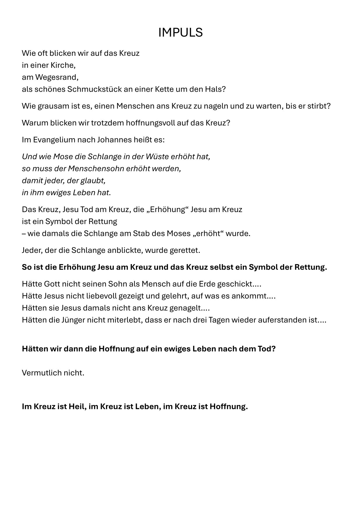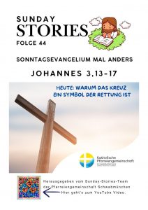Sunday Stories – Folge 44 „Warum das Kreuz ein Symbol der Rettung ist“ Posted on September 14, 2025 by Karola Nothofer No comments Categories: AktuellesTags: Bibel, Bible, Evangelium, gleichnis, Jesus, Johannes, lehre, podcast, rettung, schlange, story, sunday, sunday stories, Wüste Lobpreisabend am Donnerstag, 11. September nach der Messe um 18:00 UhrKleinkinderkirche „Gemeinsam sind wir stark!“ am Sonntag, 21.09. um 10:30 Uhr in St. Michael