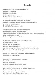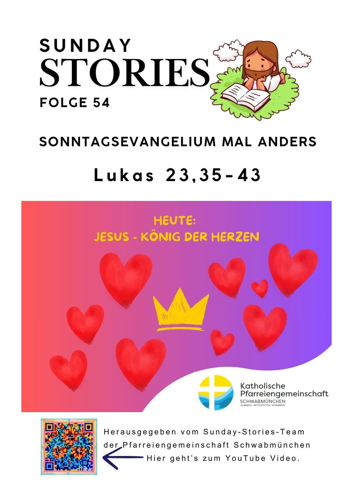 Sunday Stories – Folge 54 – „Jesus – König der Herzen“ Posted on November 23, 2025 by Karola Nothofer No comments Categories: AktuellesTags: Bibel, chrisstkönig, christus, Evangelium, Fest, geschichte, glaube, gleichnis, Jesus, Kirche, podcast, Sonntag, sunday RED WEDNESDAY – 19.11.2025 – Buß-und Bettag – Wir beten für verfolgte Christen weltweitSunday Stories Folge 55 – „Wie sieht es in unserem Herzen aus?“
