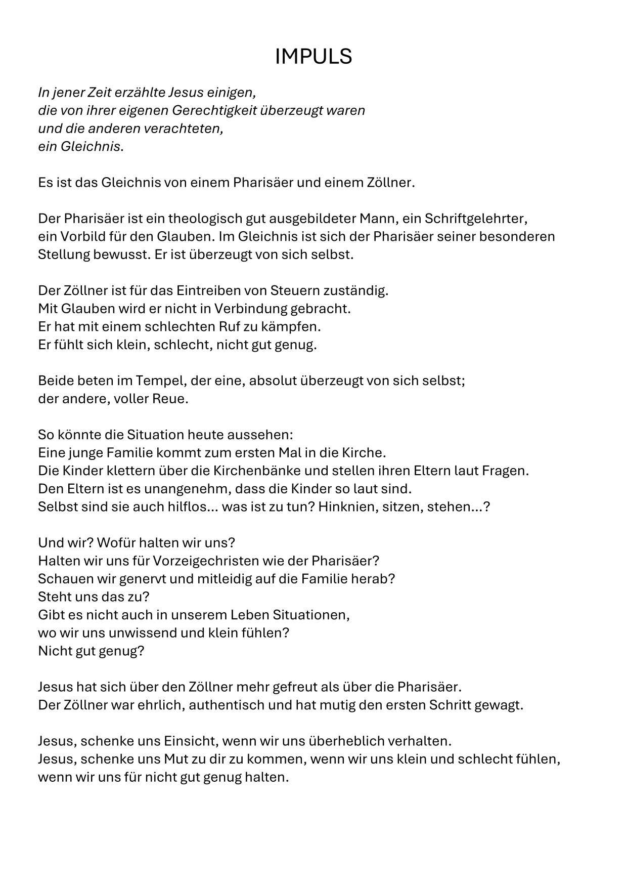 Sunday Story – Folge 50 „Wofür halten wir uns?“ Posted on Oktober 26, 2025 by Karola Nothofer No comments Categories: AktuellesTags: Evangelium, Familiensonntag, glaube, hörspiel, Jesus, podcast, Sonntag, sunday, sunday story Chor- und Orchesterkonzert am 25. Oktober: Cäcilienmesse von GounodSunday Stories – Folge 51 „Haben wir das Vertrauen, dass es gut werden wird?“
